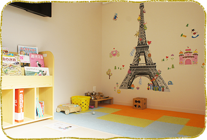 待合室のそばにキッズスペースを設けております。小さなお子さまも、備え付けの絵本やおもちゃで遊びながら楽しく診察をお待ちいただけます。