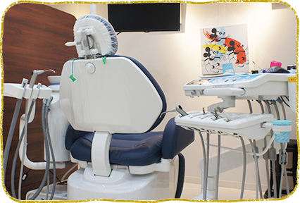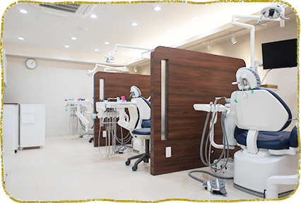 3台のユニットをパーテーションで区切り、治療している姿を他の患者さまには見られないようになっています。